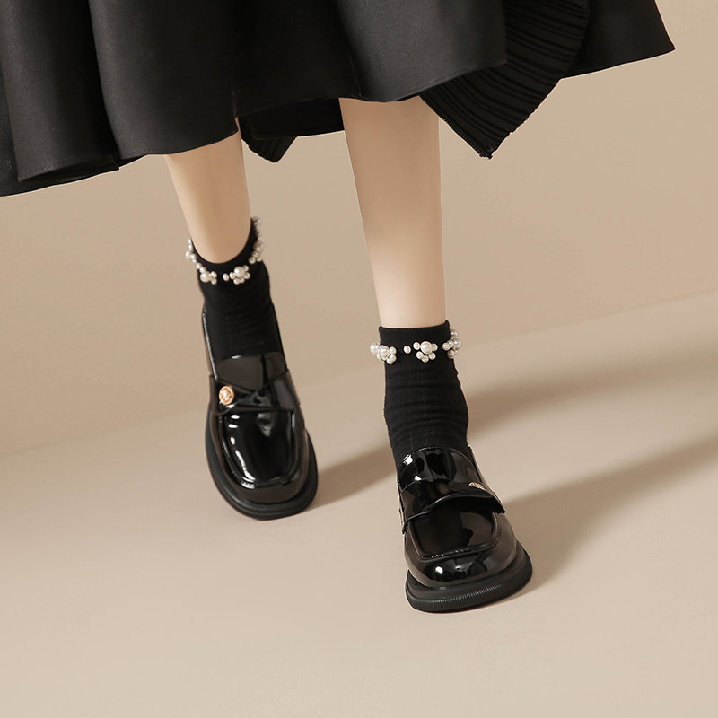 大码 黑色英伦小皮鞋 金币厚底乐福鞋 百搭单鞋 41到43 女2026春秋新款