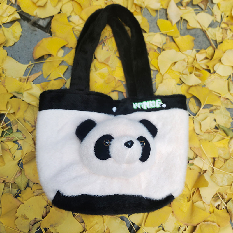 熊猫包包毛绒立体女卡通可爱大容量拎包时尚 成都文创纪念品手提包