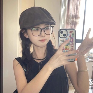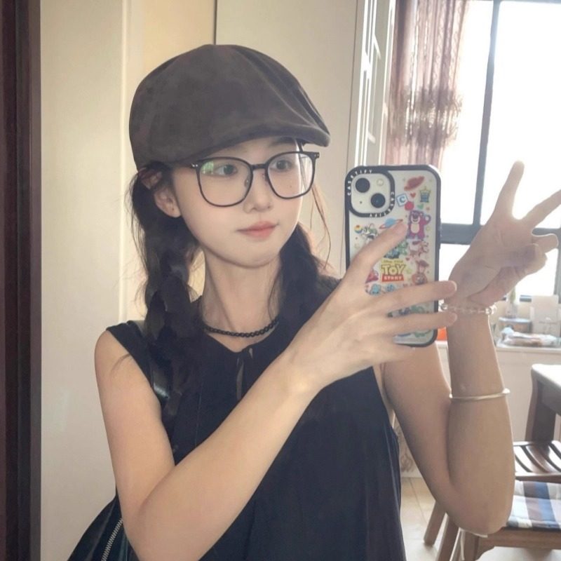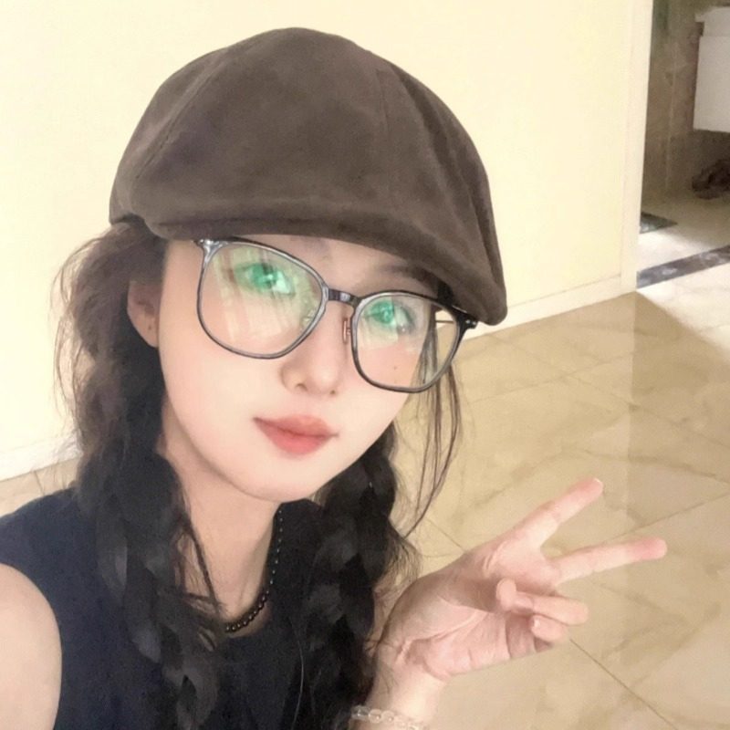 2025新款 麂皮绒前进帽女英伦风复古大头围贝雷帽小众百搭画家帽子
