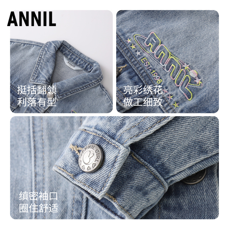 复古百搭女童秋新 全棉软牛仔腊肠狗绣花夹克外套短款 丹宁假日