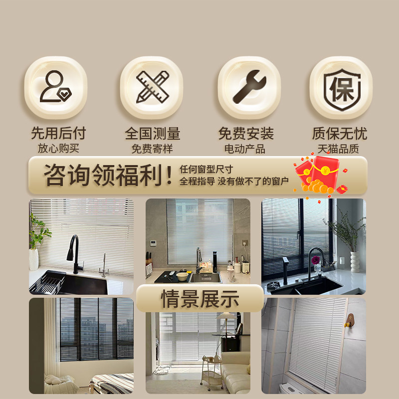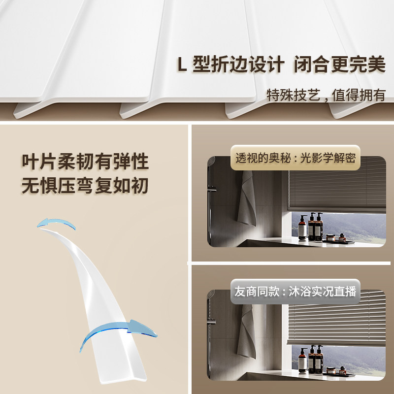 L型防窥百叶窗帘免打孔2025新款 PVC防水防油厨房卫生间浴室遮挡帘