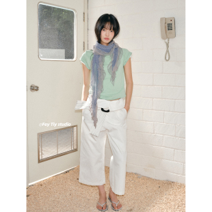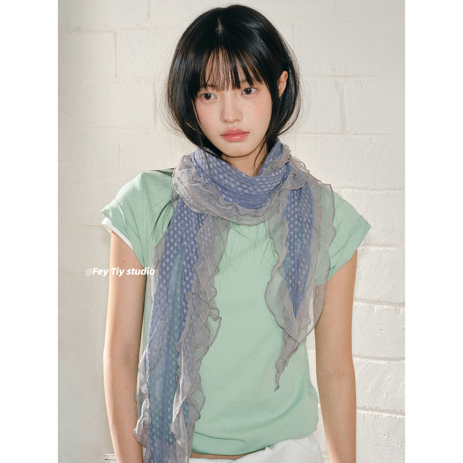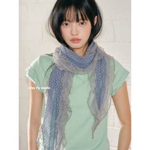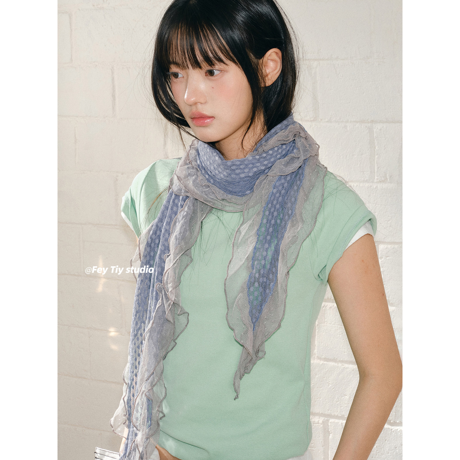 feytiy 千禧味儿拼色丝巾女春秋定制百搭蕾丝花边围脖领巾 古早感