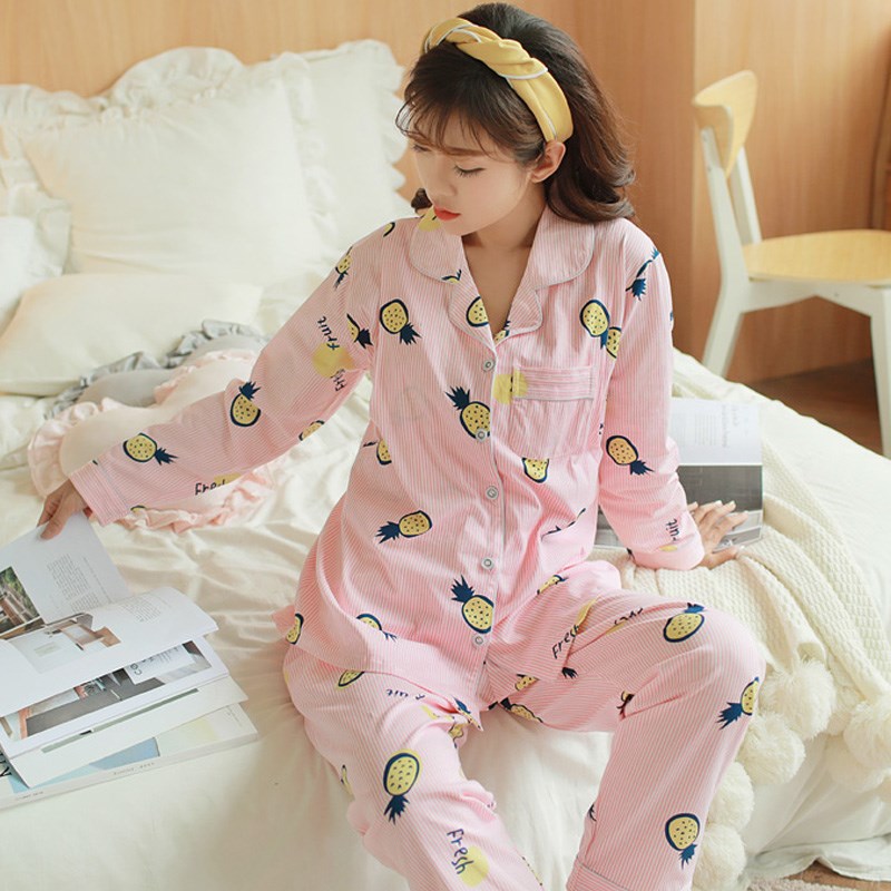 加大码 套装 家居服春秋 秋冬季 芬腾女士睡衣空气棉夹层纯棉加厚长袖