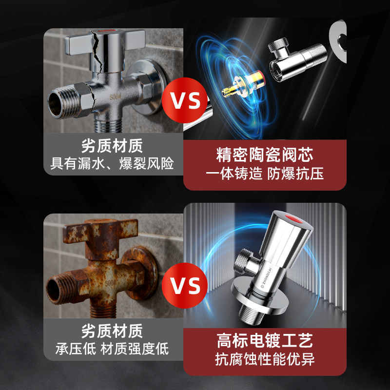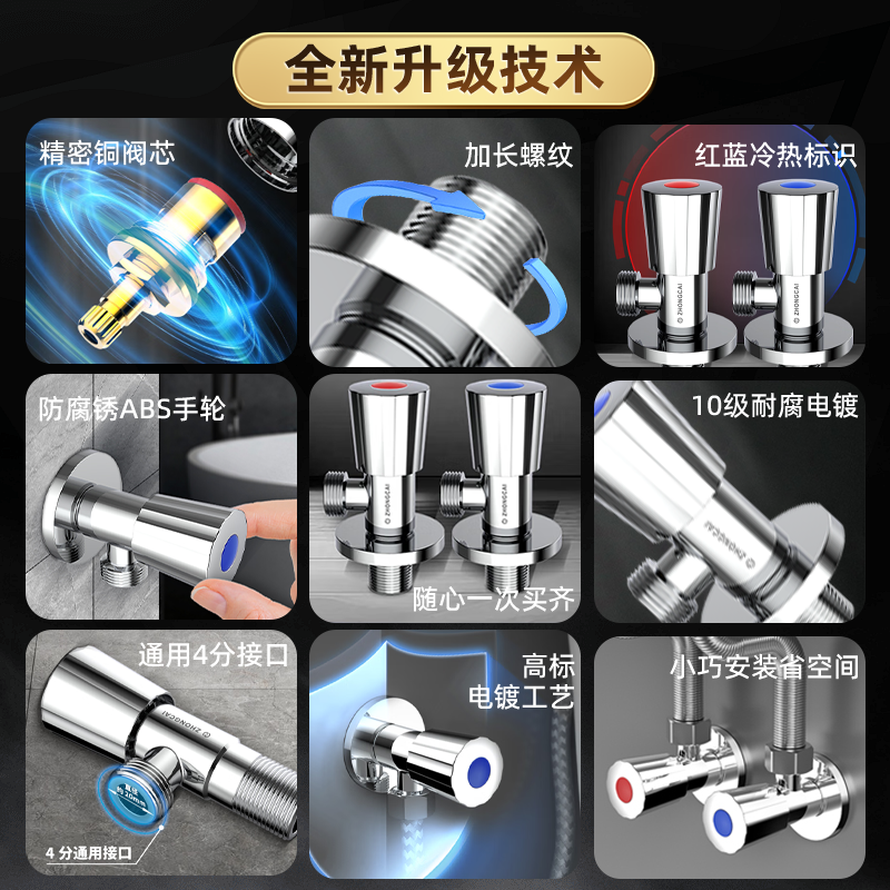 中财管道不锈钢角阀三角阀加厚冷热水通用四分角阀马桶热水器球阀