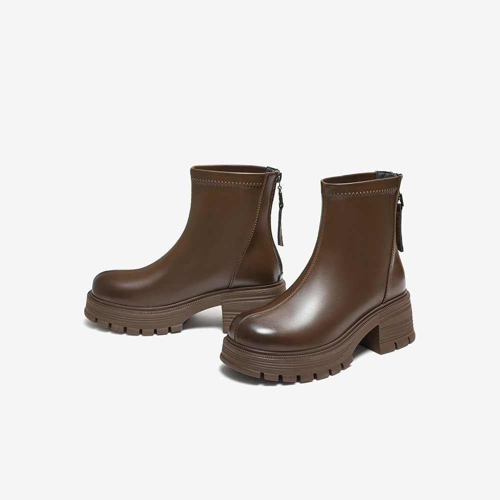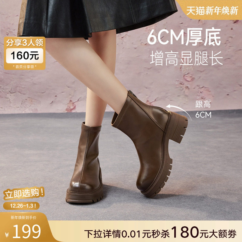 靴皮靴2025冬新款 天美意复古厚底加绒切尔西短靴女鞋 子瘦瘦靴时装
