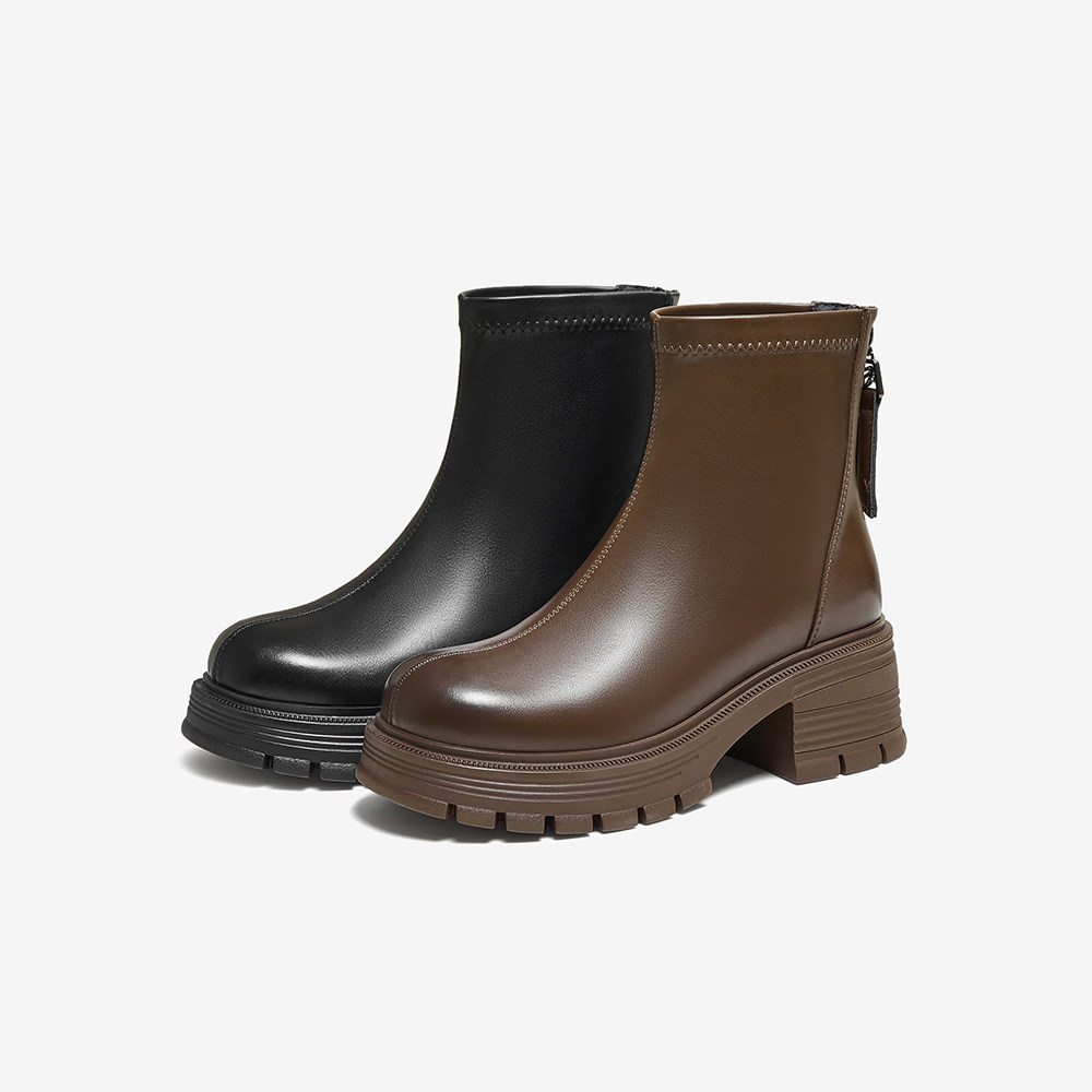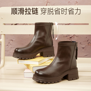 靴F3051DD5 通勤方头复古短靴粗跟女时装 百思图2025冬季 商场新款