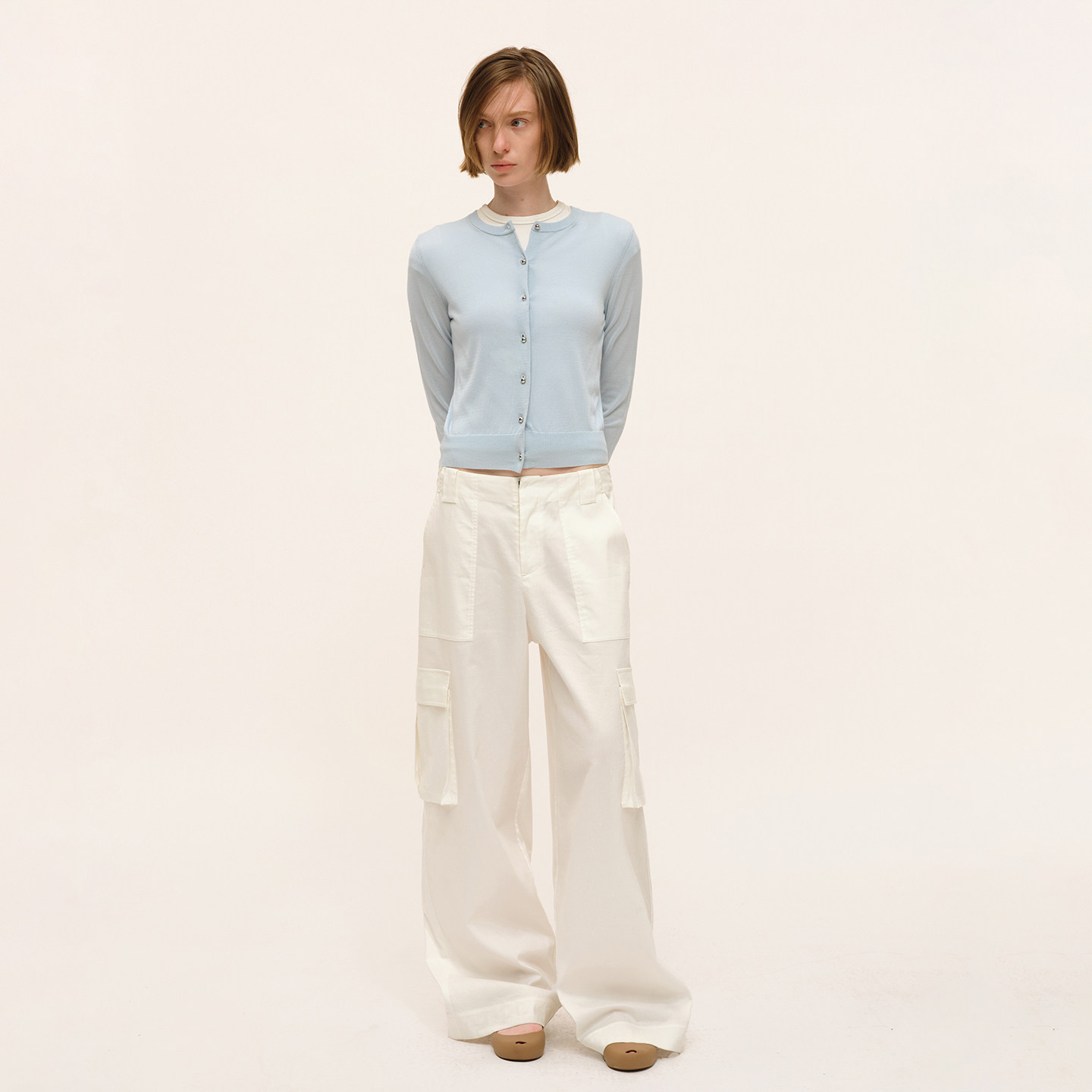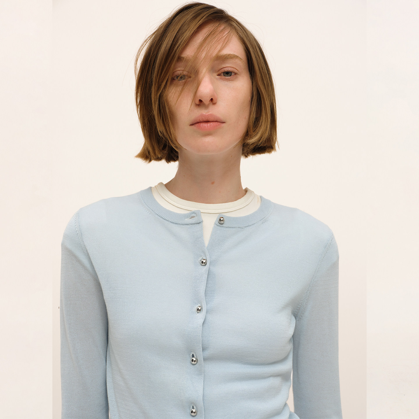 女通勤纽扣空调开衫 针织衫 外套 修身 SMIIILE亲肤透气醋酸圆领长袖