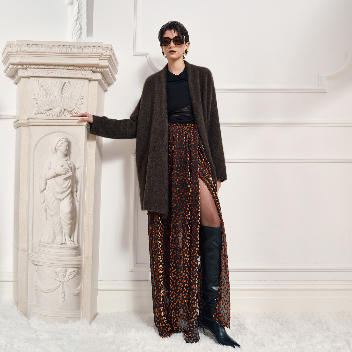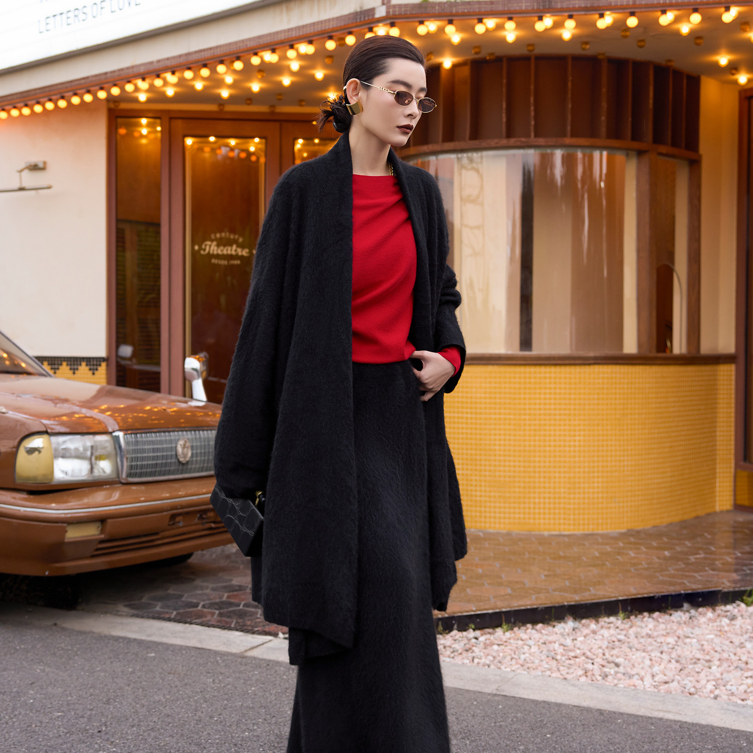 TU女装 琥珀流光疗愈绒感外套 云巅絮语100牦牛绒拉绒针织开衫