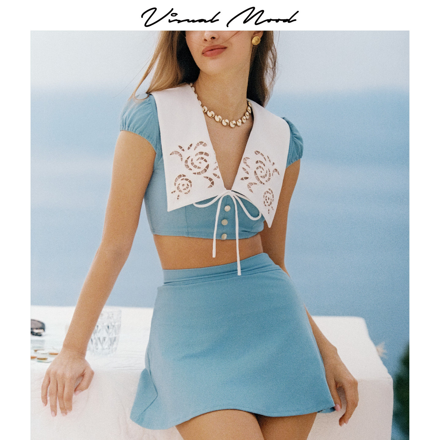 套装 显瘦比基尼女分体泳衣镂空刺绣度假裙裤 mood2025夏季 visual