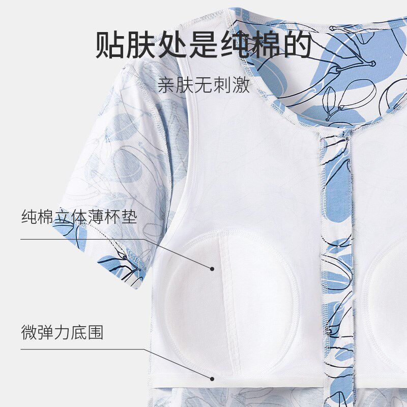 春织妈妈睡衣女防凸点纯棉家居服中老年开衫 内衣老X人可外穿夏季