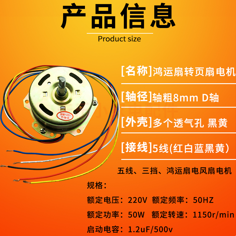 鸿运扇电机5线万宝转页扇机头电风扇马达配件yyhs 45纯铜50w通用