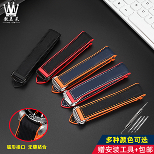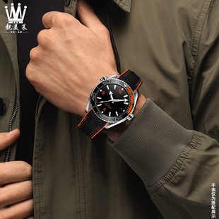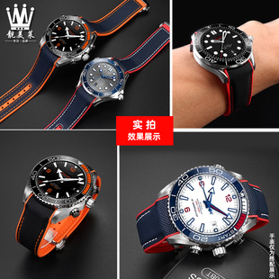 适配欧米茄海马300天文台海洋宇宙600四分之一橙尼龙硅橡胶手表带