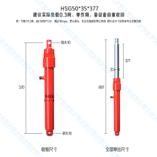 液压油缸单向多节升降平台沃得锐龙收割机台拨禾轮高炮卸粮HSG86