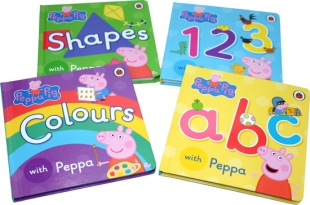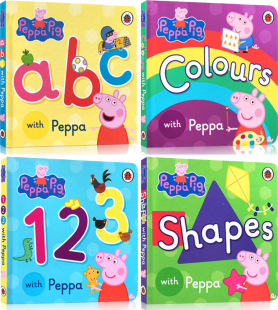 With ABC 自营 Learn 粉红猪 绘本 字母数字颜色 Peppa 小猪佩奇英文原版 Colours 123 Pig 纸板书4册盒装 Shapes