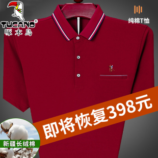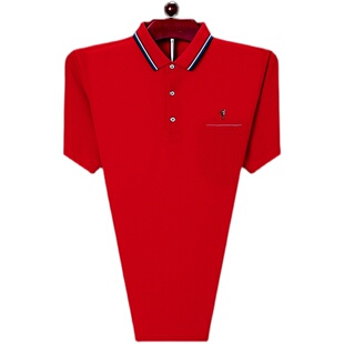 T恤爸爸装 啄木鸟本命年大红色纯棉短袖 半袖 宽松大码 有口袋 t恤男士