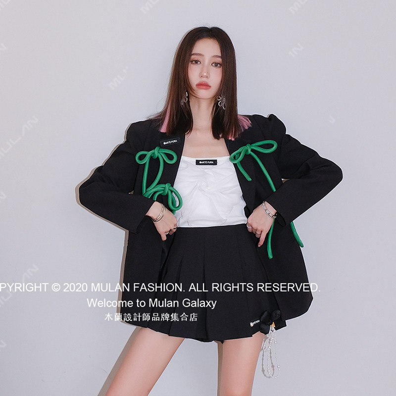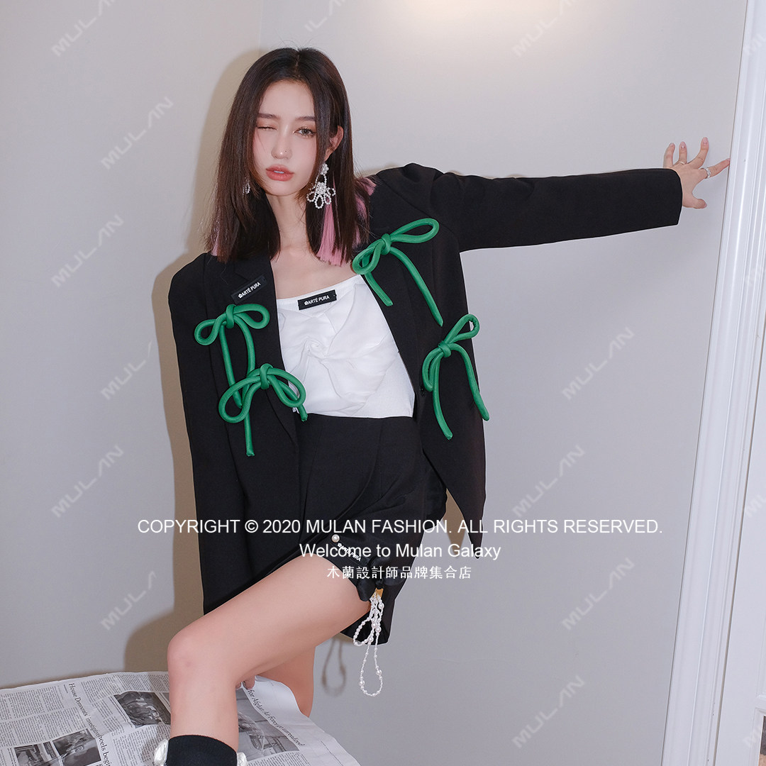 蝴蝶结西装 PURA ARTE 玫瑰爱心抽褶吊带叠褶花朵珠链短裤 折