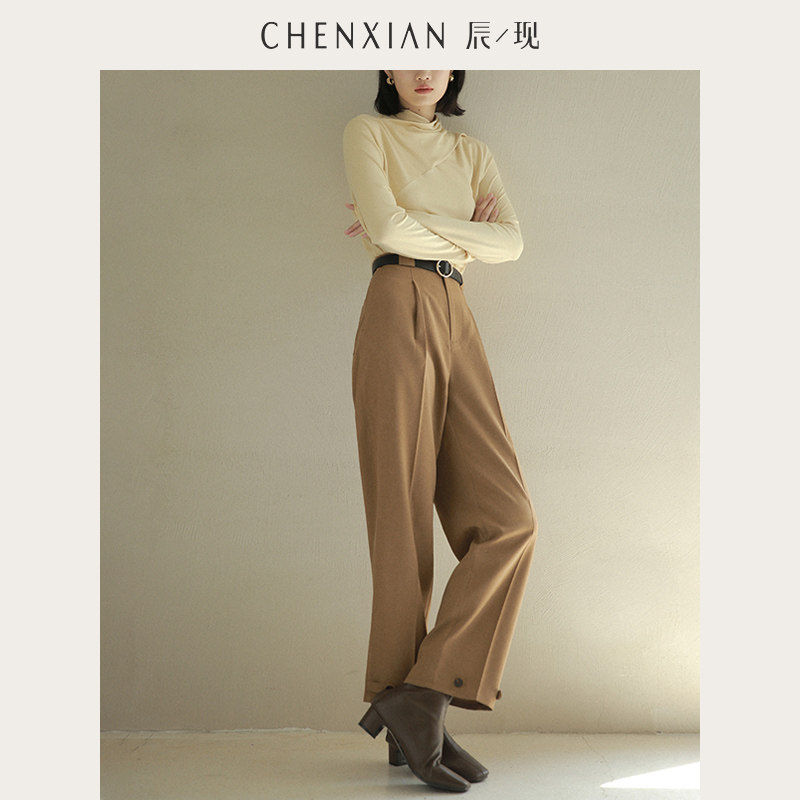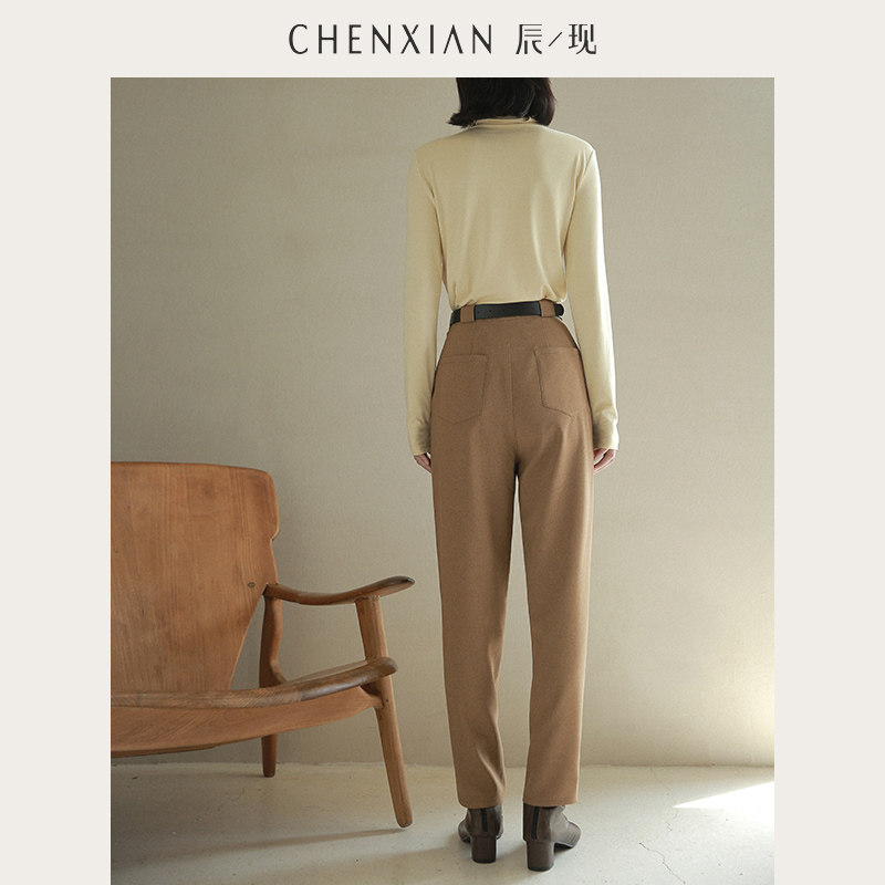 到手199元 休闲高腰直筒裤 一裤 易打理仿毛麻锥形小脚裤 女 两穿