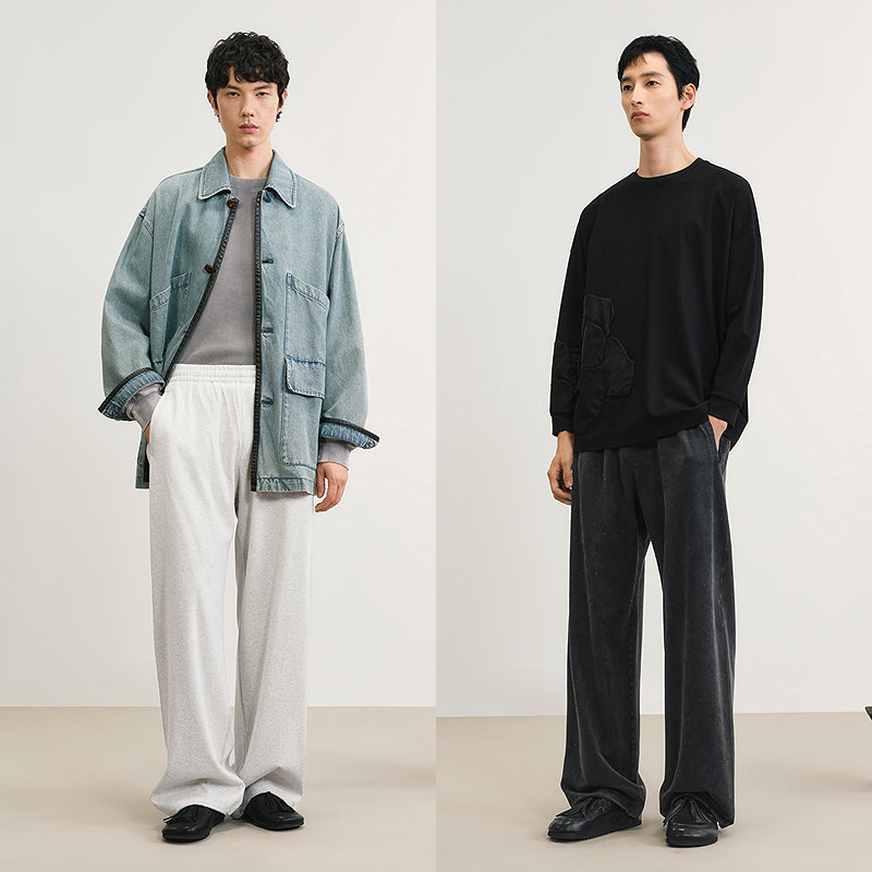 商场同款 阔腿裤 速写男装 卫裤 贴钻舒适潮9P2E13630 2025春新品