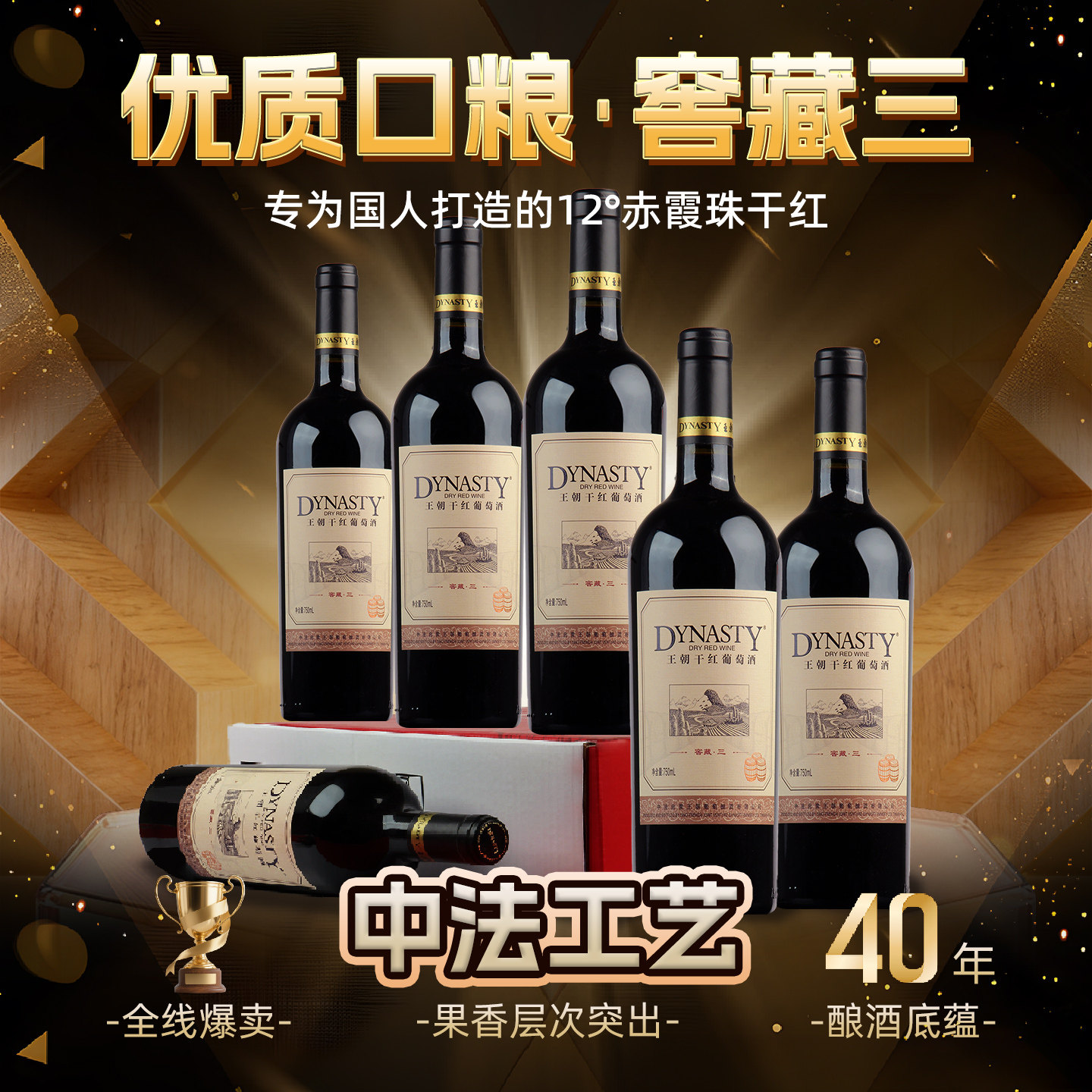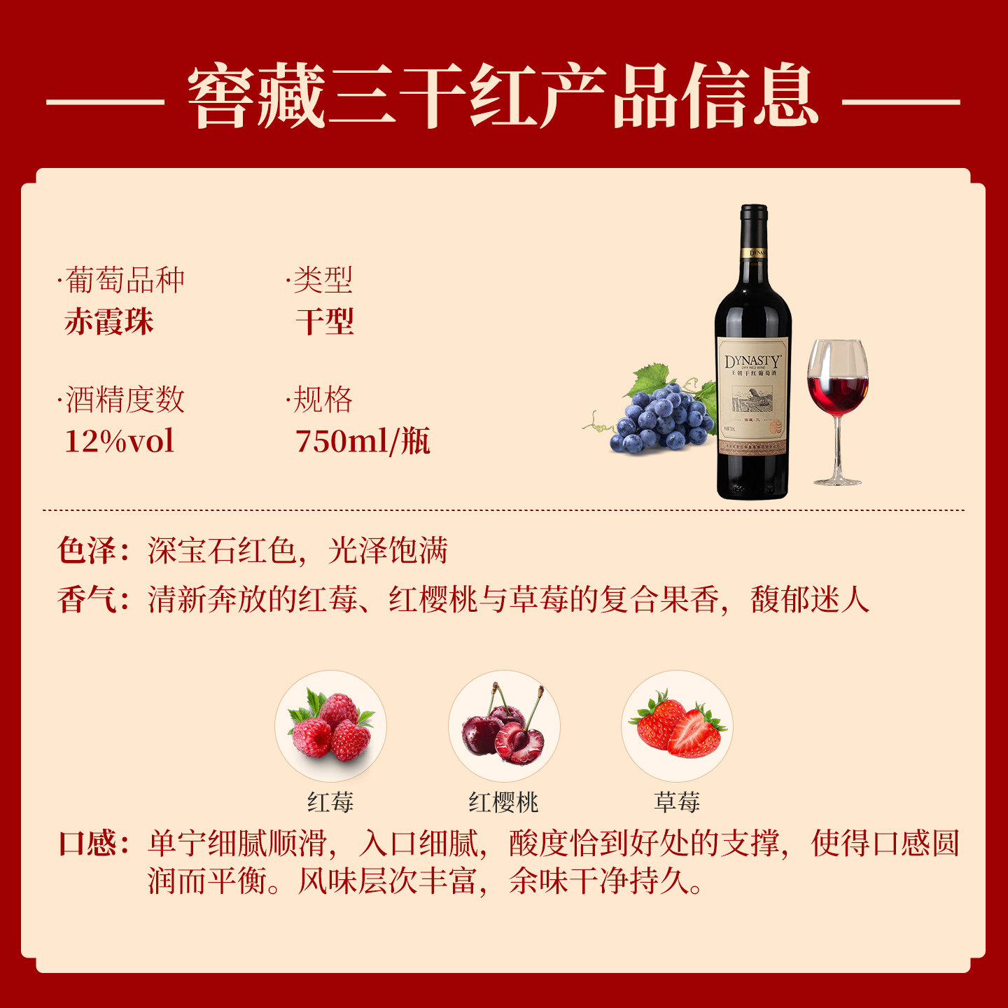 Dynasty王朝窖藏三干红葡萄酒750mL单支6瓶装 酒 整箱国产官方正品