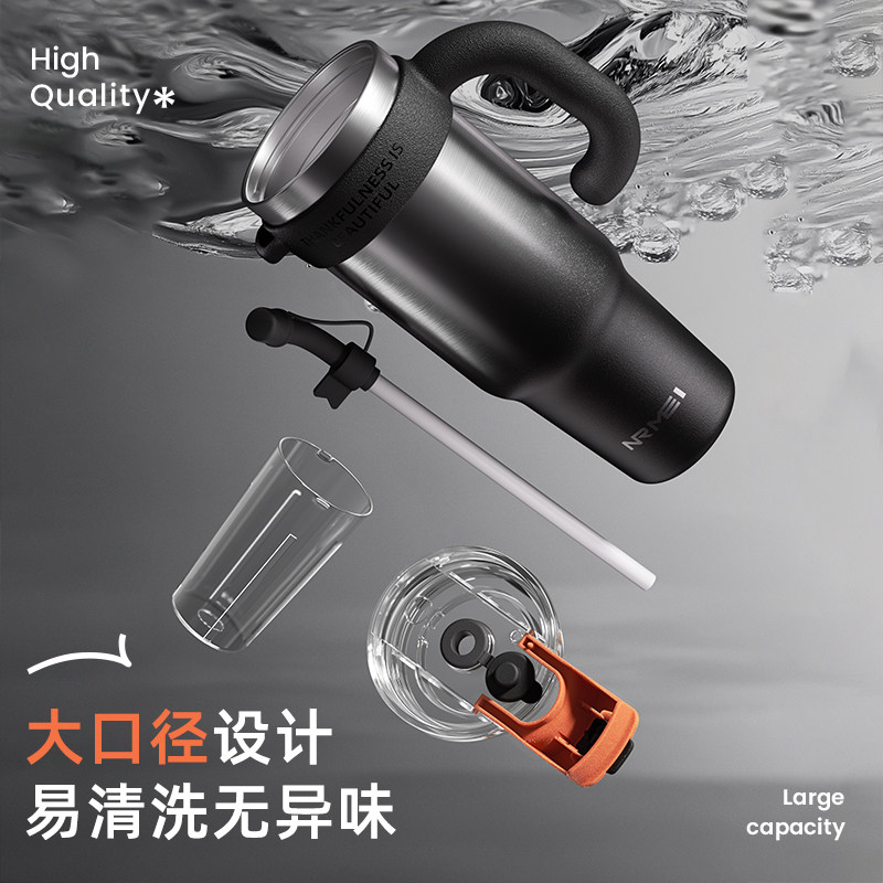 小米官旗巨无霸吸管杯保温杯大容量车载316L不锈钢水杯保冷冰霸杯