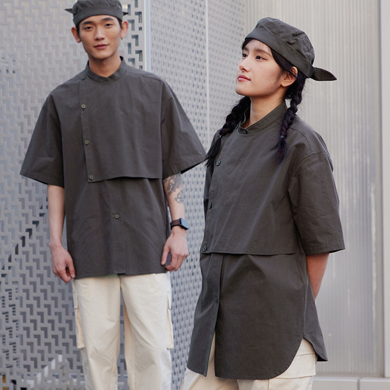 爱斯坦全棉手作工装 奶茶店茶饮工作服素食烘培糕点工作服男女通用