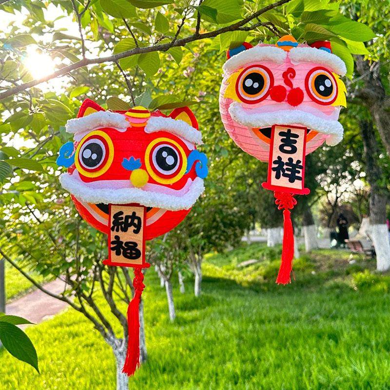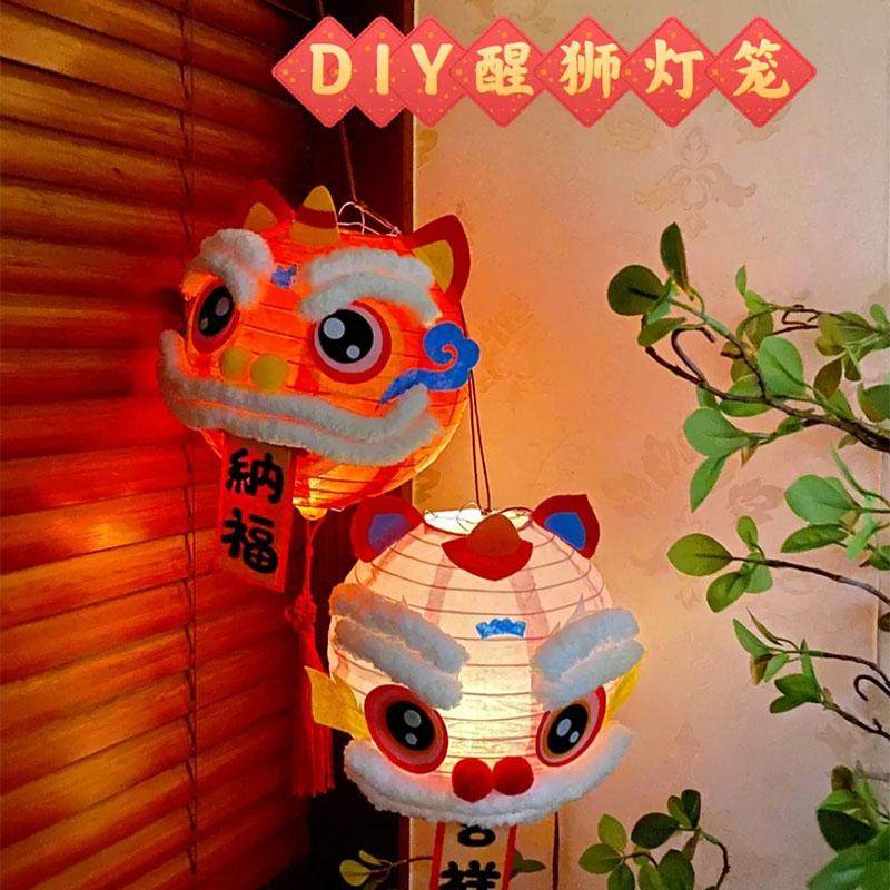 马年新年春节元 旦雄狮灯笼手工diy儿童制作材料古风狮子花灯玩具