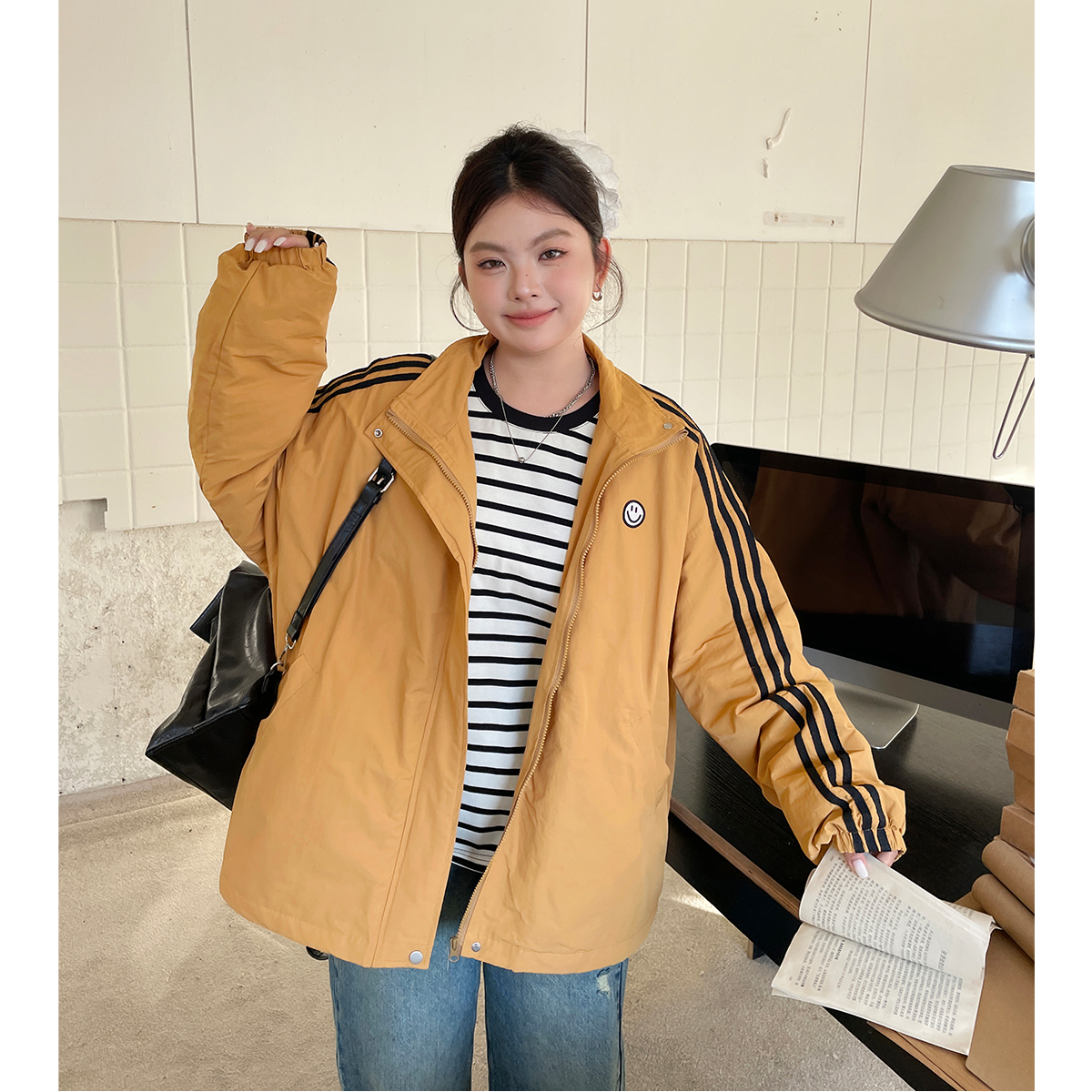 秋冬款 2024新款 洋气独特别致立领外套胖mm韩系巨显瘦棉服 女装 大码