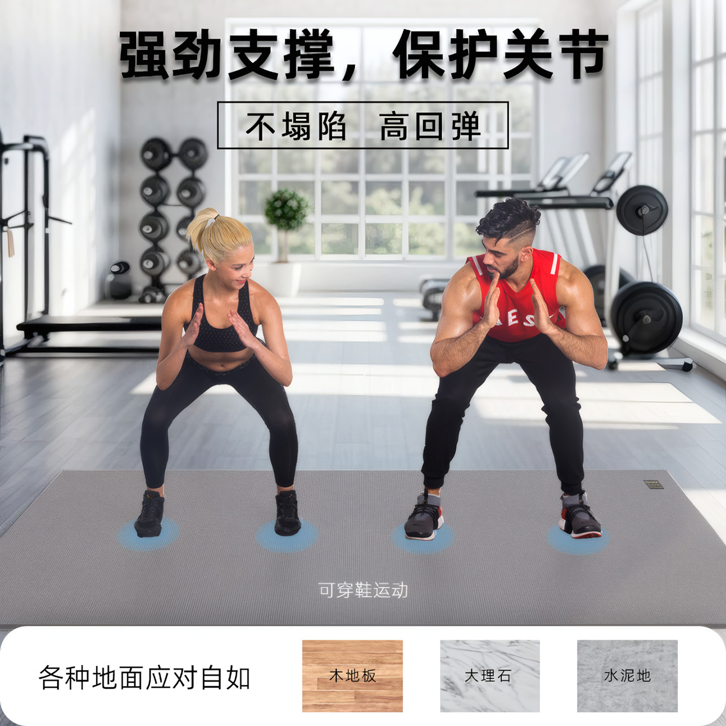无绳跳绳减震垫瑜伽垫子地垫家用健身防震隔音防滑慢跑专用静音垫