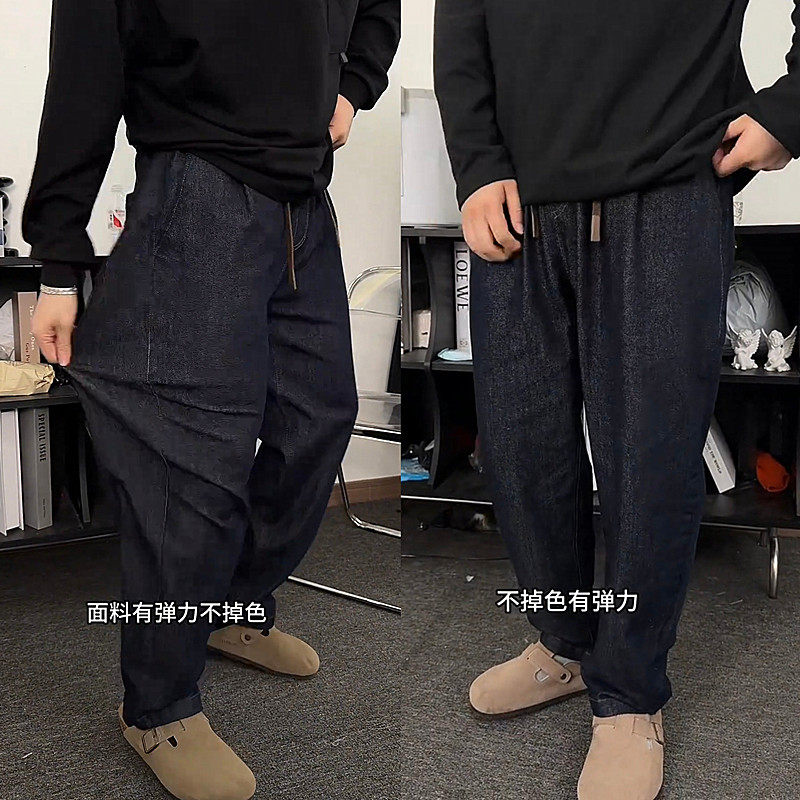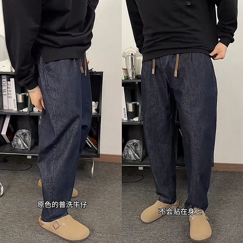 明线耐磨大裆弹力宽松直筒裤 2025秋冬新款 男士 牛仔裤 水洗原色大码