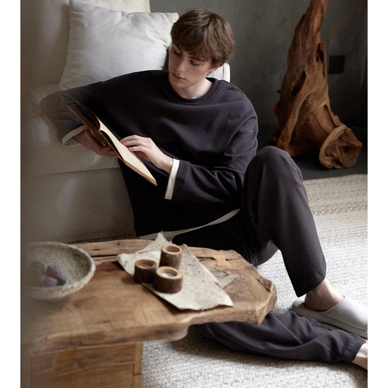 青少年宽松大码 猫人男士 2025新款 纯棉长袖 家居服可外穿 睡衣春秋款