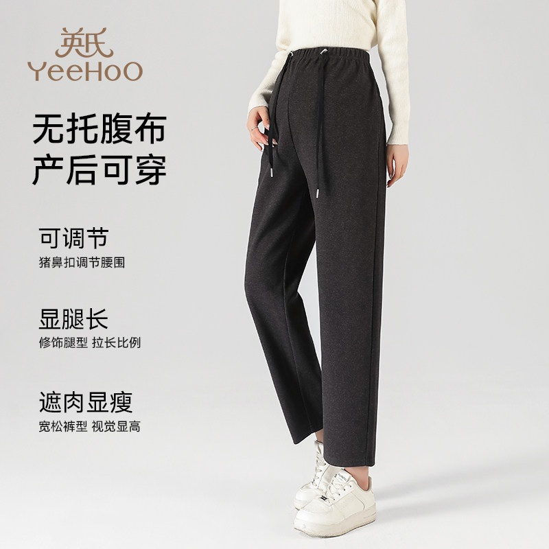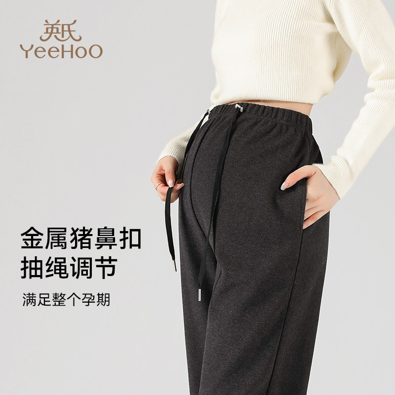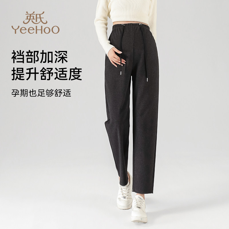 子2025秋季 休闲裤 新品 无托腹显瘦大码 休闲星空呢哈伦裤 英氏孕妇裤