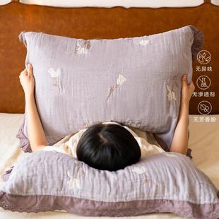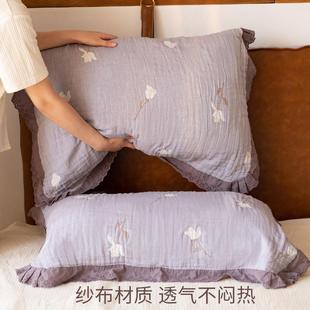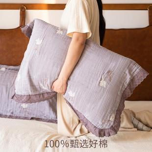 加大防头油全棉高档 纯棉一对装 白玫瑰紫色花边枕巾韩式 2024新款