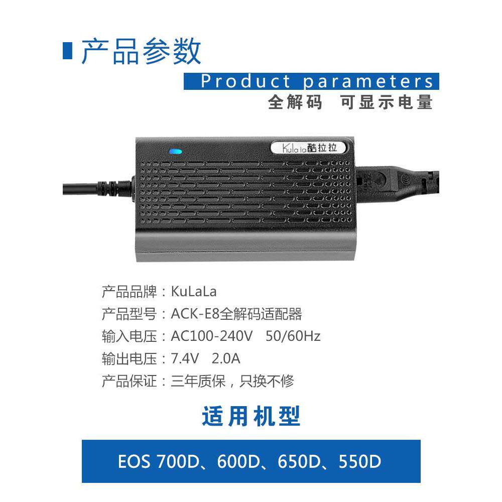 E8假电池 E8适配器550D650D Kulala佳能700D 600D相机外接电源ACK