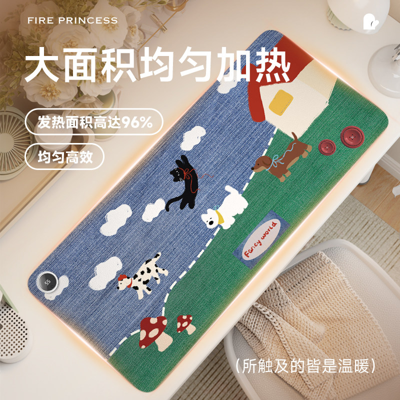 秋叶与小猫加热鼠标垫子女生国风超大发热暖桌垫办公室垫子桌面垫防水usb电脑键盘垫电热板暖手桌垫可加热垫