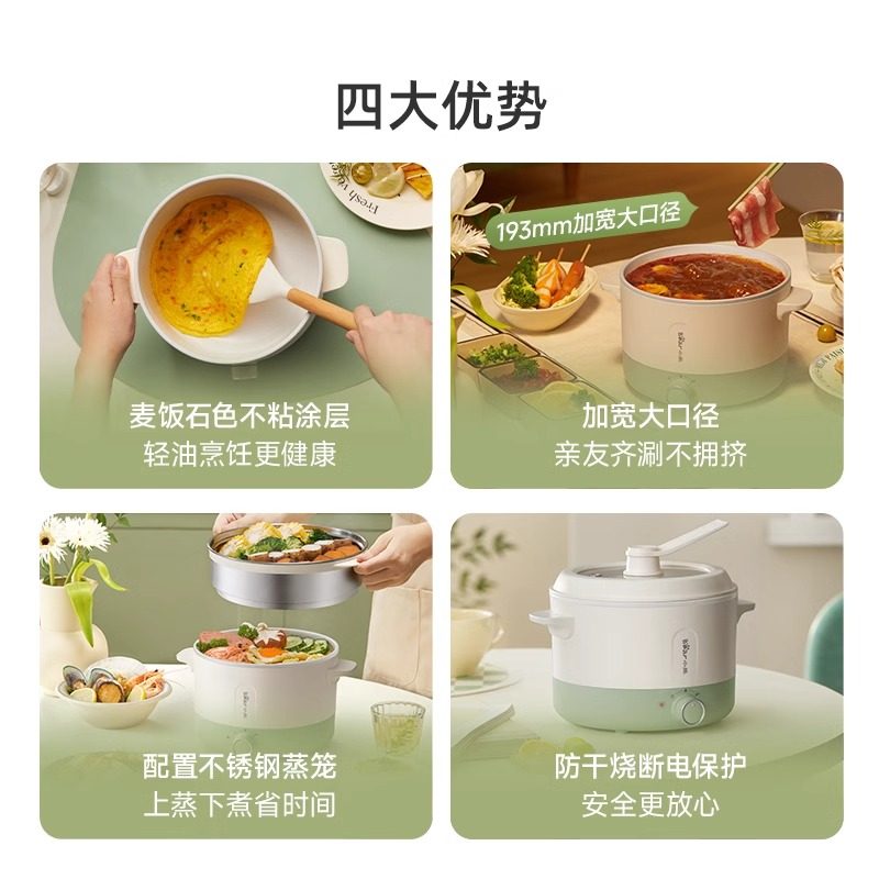 九阳电煮锅宿舍学生煮面锅蒸煮一体多功能火锅家用小型不粘烹饪机