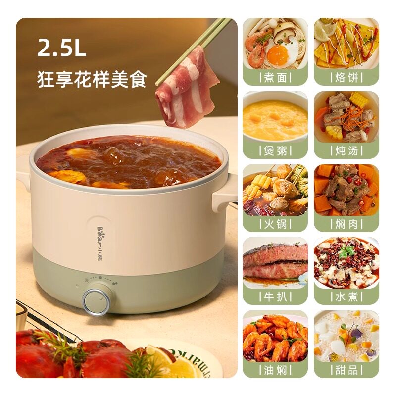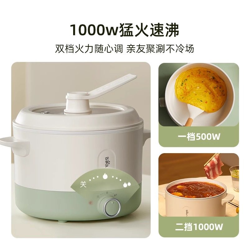 小熊电煮锅家用宿舍学生锅一人食小型火锅一体锅多功能泡面小电锅