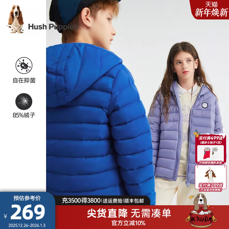 新款 儿童羽绒服冬装 暇步士童装 男童宝宝连帽女童保暖轻薄羽 轻暖