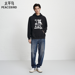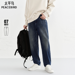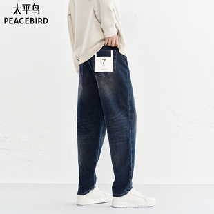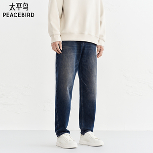 暖肤棉跳色水洗牛仔长裤 复古蓝色牛仔裤 潮 美式 太平鸟男装