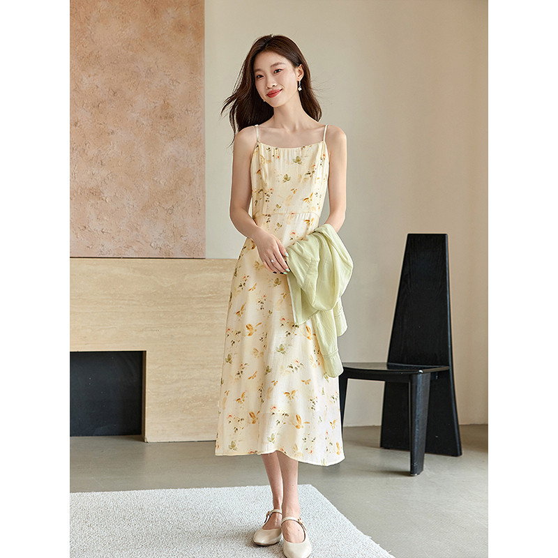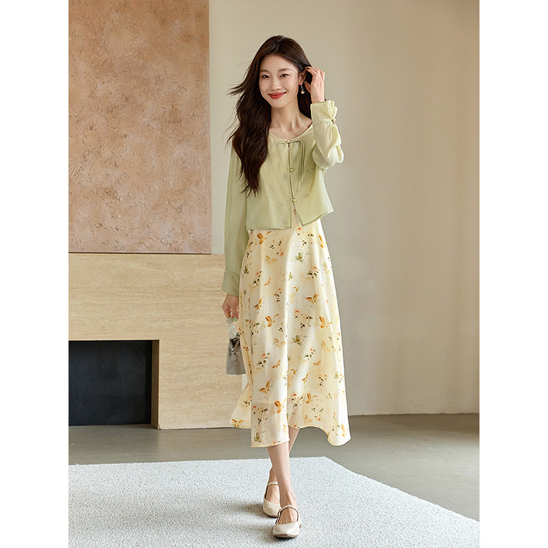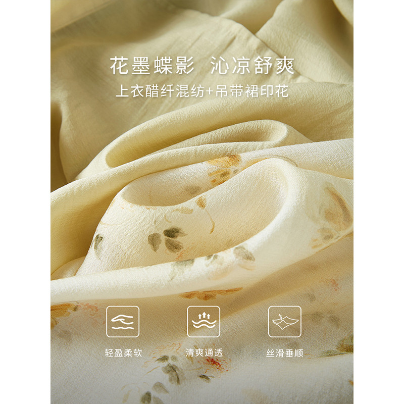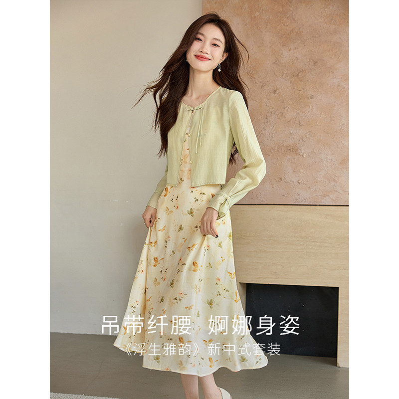 女2025初秋新款 碎花吊带连衣裙两件套装 国风醋酸衬衫 熙世界新中式