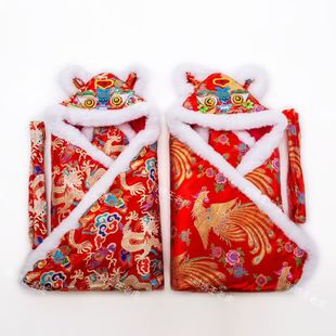 纯手工新生儿中国风刺绣加厚虎头抱被婴儿披风虎头包被婴儿盖被