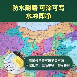 水洗耐磨学生专用 饰环保塑料pp材质 2025新版 桌面办公室家庭壁画装 无毒可水洗防水撕不烂墙贴挂图 年水晶地图中国地图世界地图