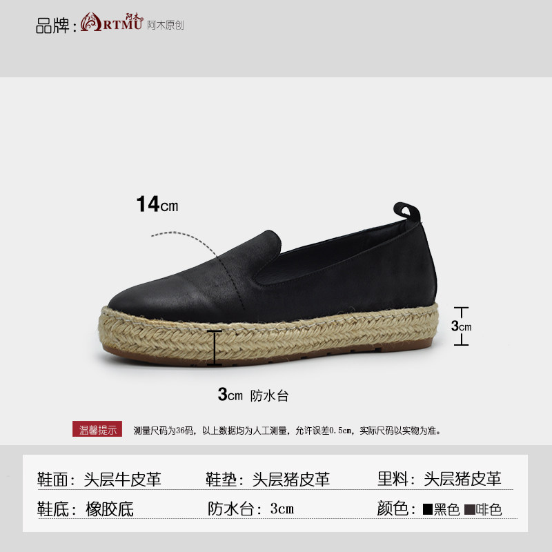 春秋款 Artmu阿木原创麻编渔夫鞋 真皮女鞋 厚底单鞋 一脚蹬休闲鞋