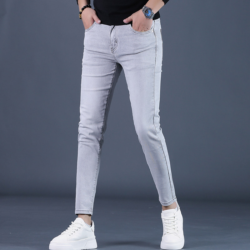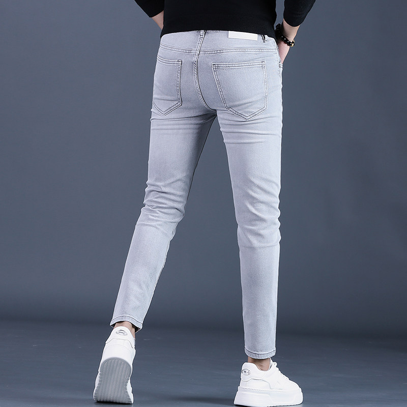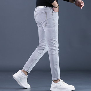 男士 高端九分牛仔裤 修身 9分裤 子 春秋季 潮牌浅灰色小脚休闲裤 新款