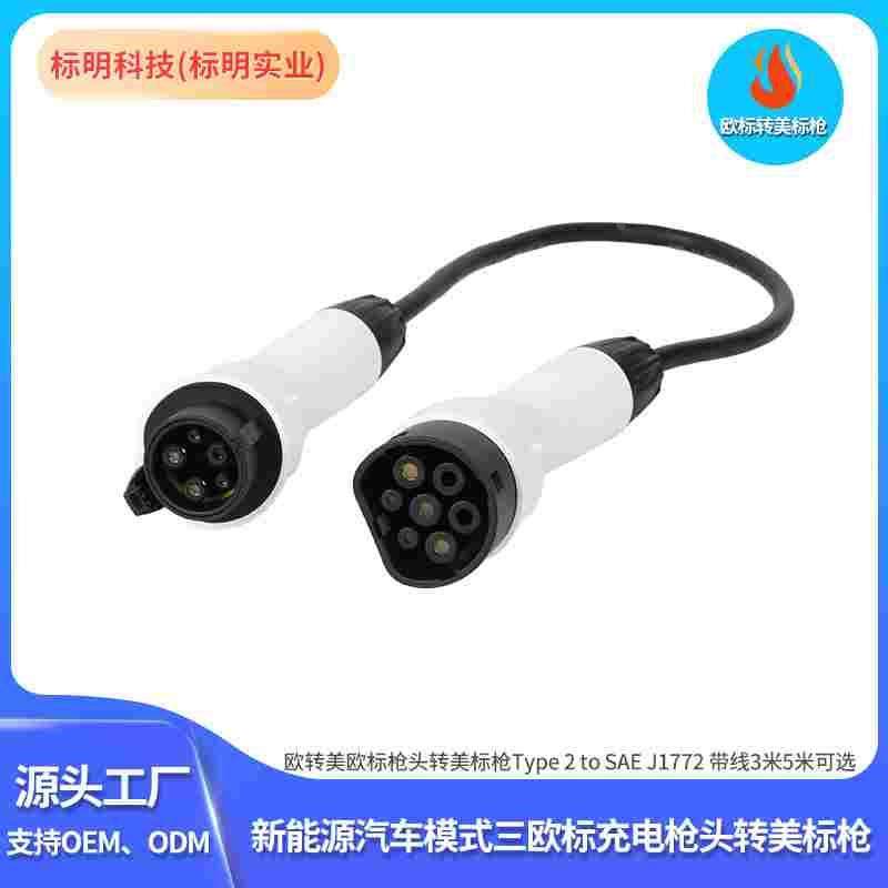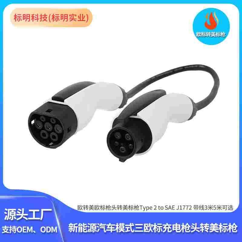 J1772 3米5米电缆可选 SAE 双头枪国标枪头转美标枪头GB