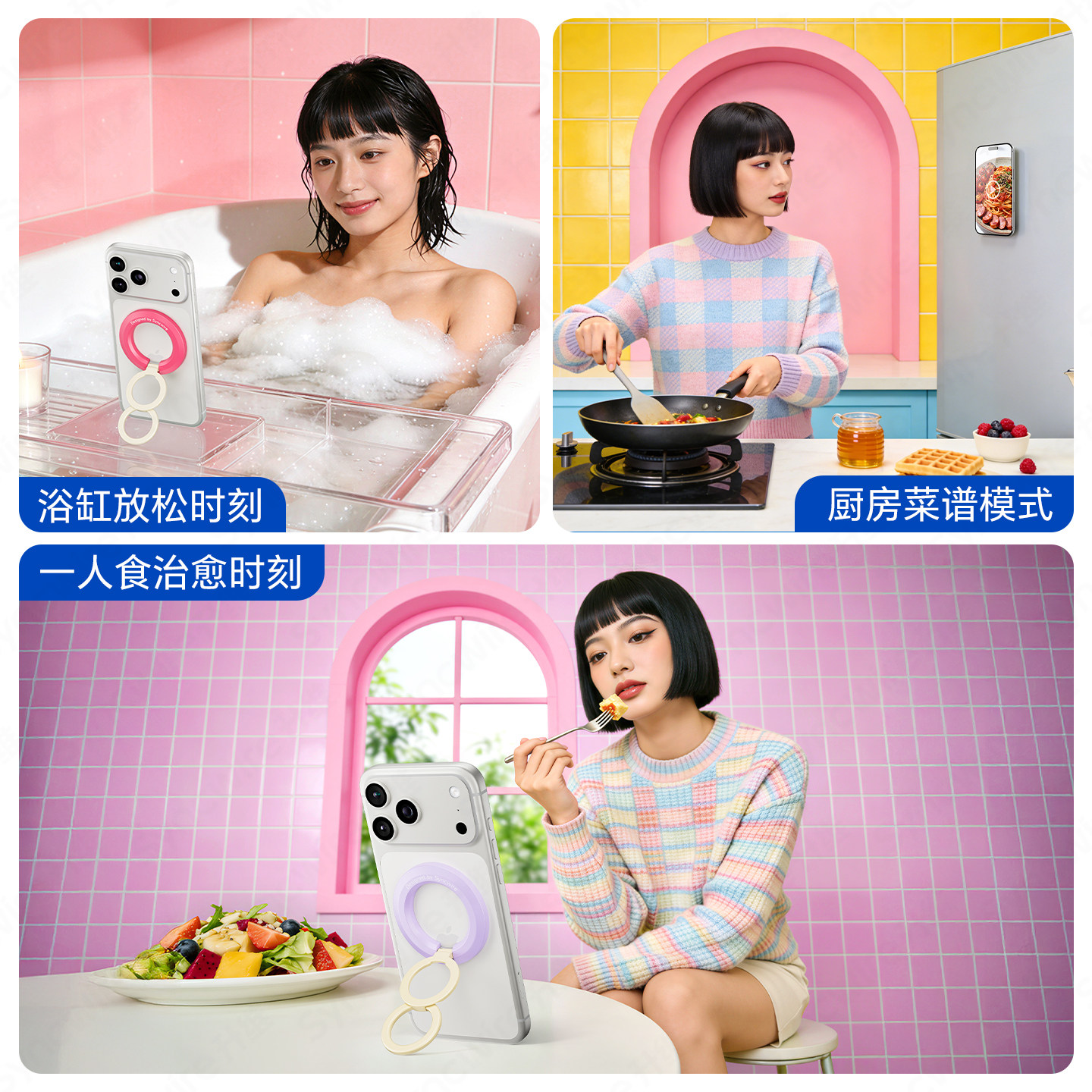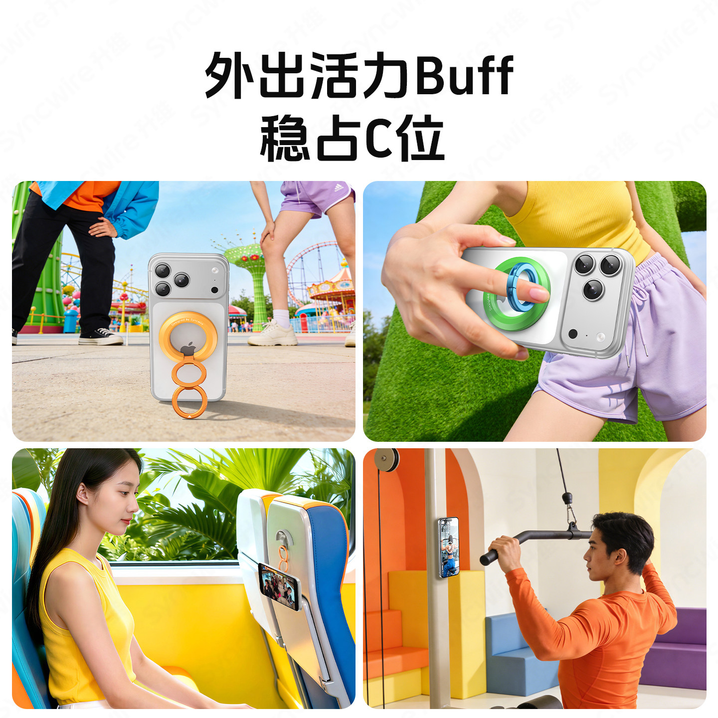 新款 17pro气囊支点壳 果力满满升维双环磁吸手机支架桌面指环扣MagSafe车载便携拍照妙妙圈适用苹果iphone16