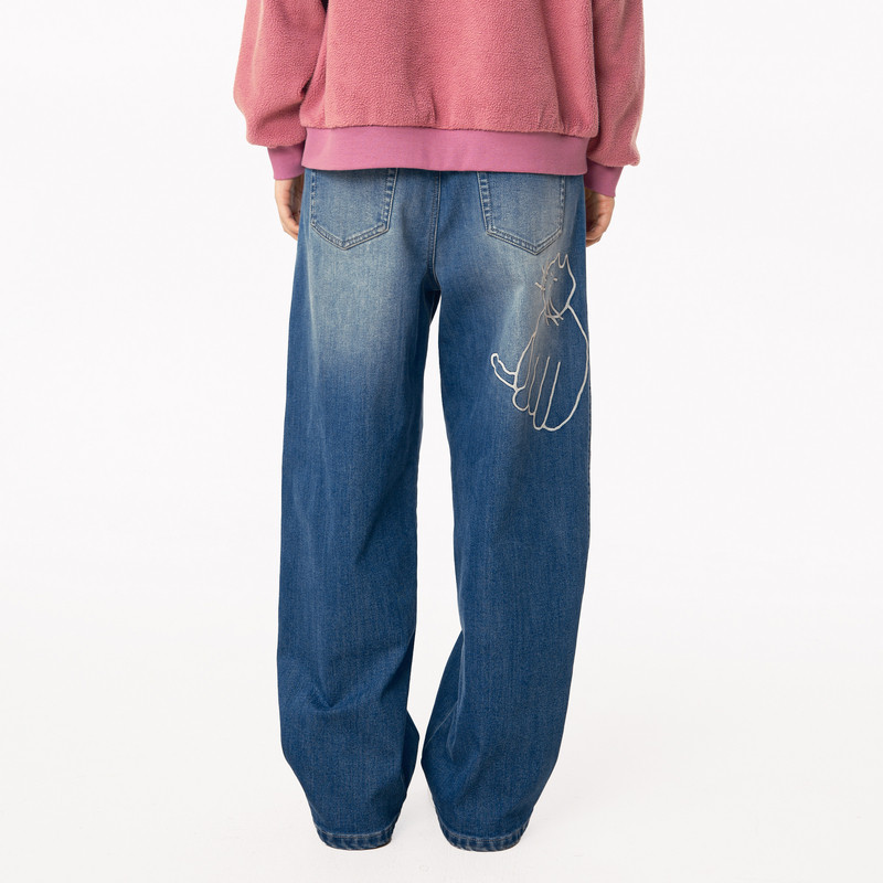 女 复古低腰显瘦y2k明线刺绣设计直筒牛仔长裤 TheDINA2025新款 美式