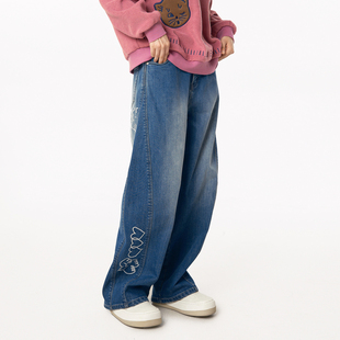 复古水洗蓝牛仔裤 美式 女春季 宽松直筒裤 ICH 百搭休闲阔腿裤 MODE