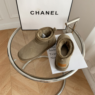 周冬雨mini同款 低跟 真牛皮雪地靴女男冬加绒加厚皮毛一体情侣棉鞋