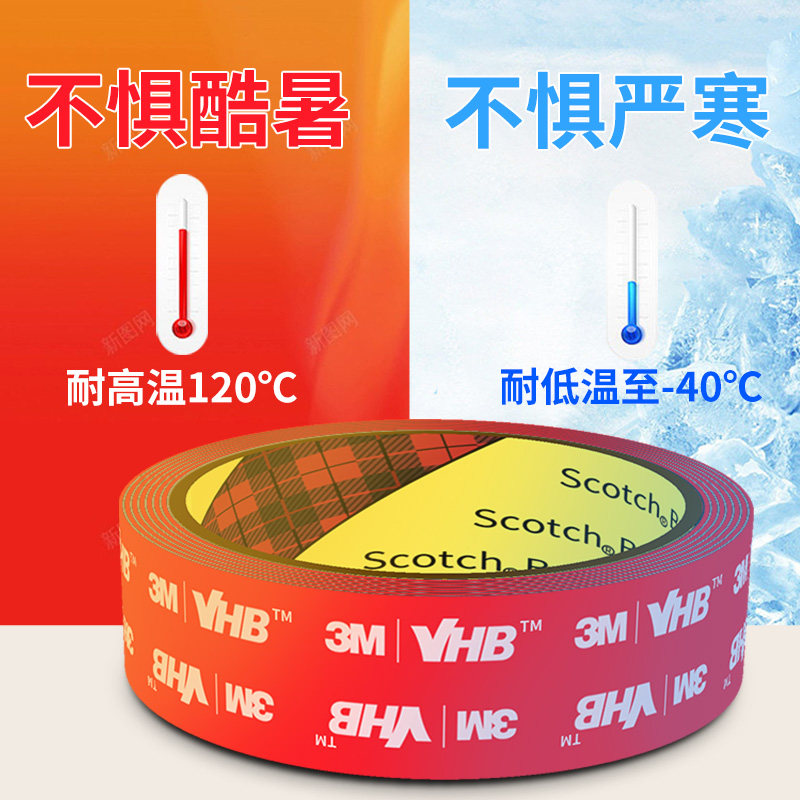 3m双面胶高粘度车用强力承重固定墙面无痕胶带不留胶不留痕耐高温泡棉两面胶强力胶带高粘度超强不伤墙背胶贴