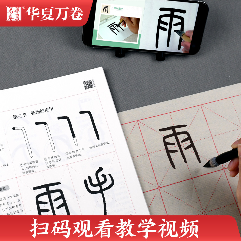 碑帖 教程 邓石如篆书千字文 成人初学者篆书书法毛笔入门练字帖米字格 看视频讲解华夏万卷 邓石如篆书入门基础教程 扫码 千字文